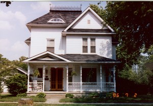 Since the reason I went to Quilting on the Square yesterday was to get back that feeling I had when I lived in a small town, I thought I’d share with you some of the pictures of our house in a small town in Indiana.  Our house was next to the county library and a block from our own town square.