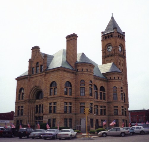 The courthouse sits in the middle of the Town Square (photo courtesy of Wikimedia Commons)