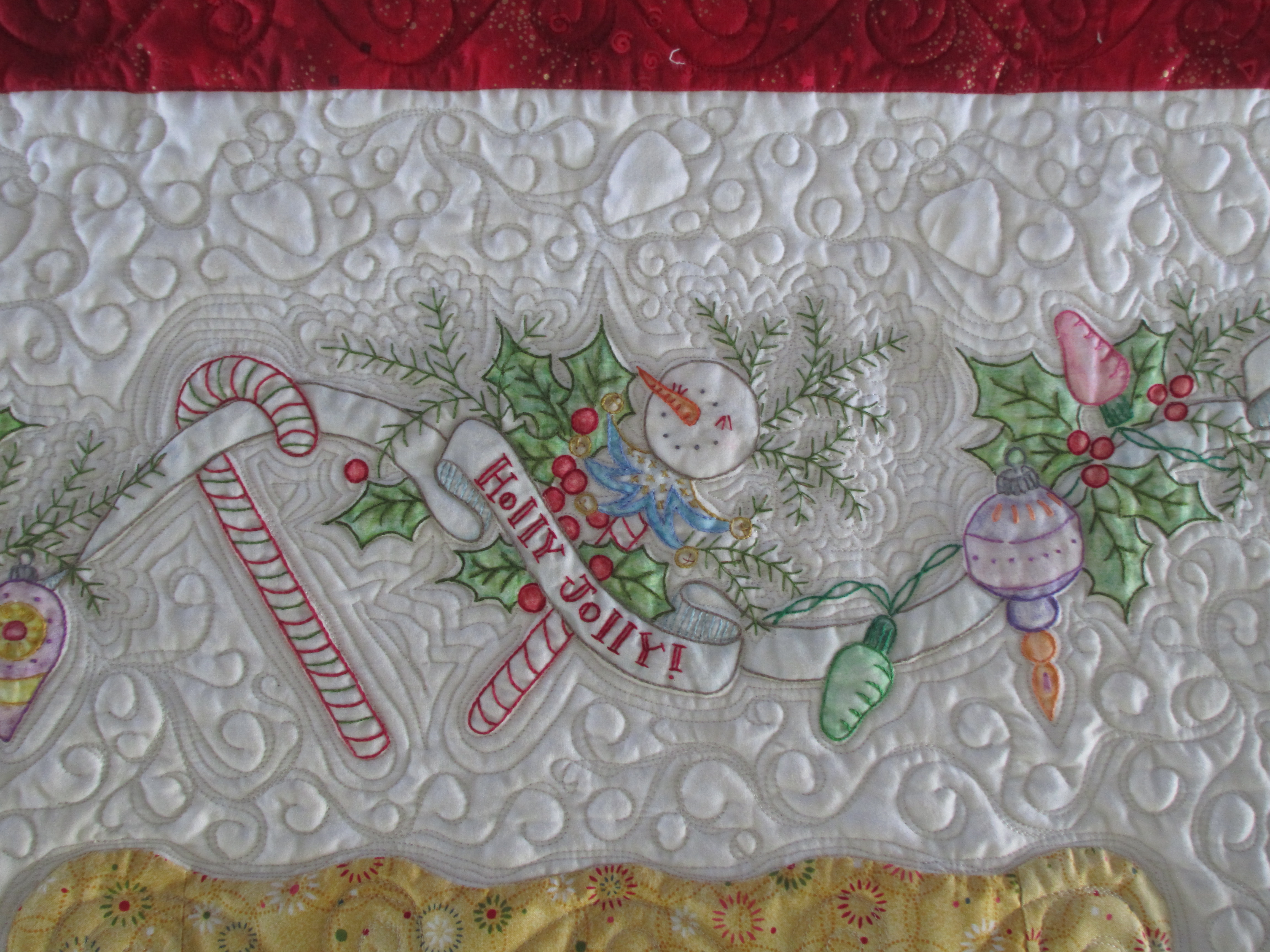 I have had a lot of fun the last couple of weeks working on Elaine’s quilts.  Working on these quilts has helped to get me into gear for Christmas and thinking about gifts, etc.  Wait ’til you see these quilts!  My jaw literally dropped when I opened the package sent via USPS.  I have always loved embroidery.  It brings back such comforting memories of my mom.  So, that was a double blessing with these quilts.