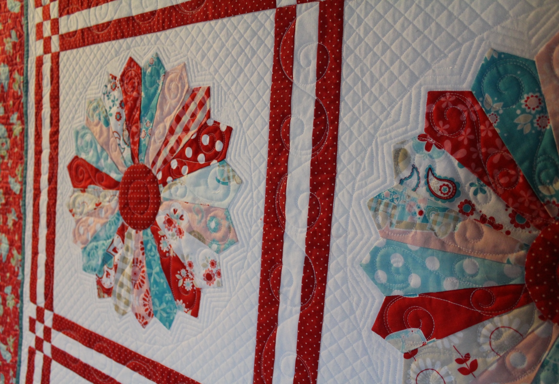 I finally finished it and tried some different quilting techniques on it. Those who know me, know that I try to make each quilt unique and add special touches. And, I’ve done those all freehand. I do not have a computer for my machine… yet. I am saving my pennies… it’s on my bucket list. 😉 But, I have a couple of the quilting designs on this quilt digitized and available for those who DO have a computer for your quilting machine.
