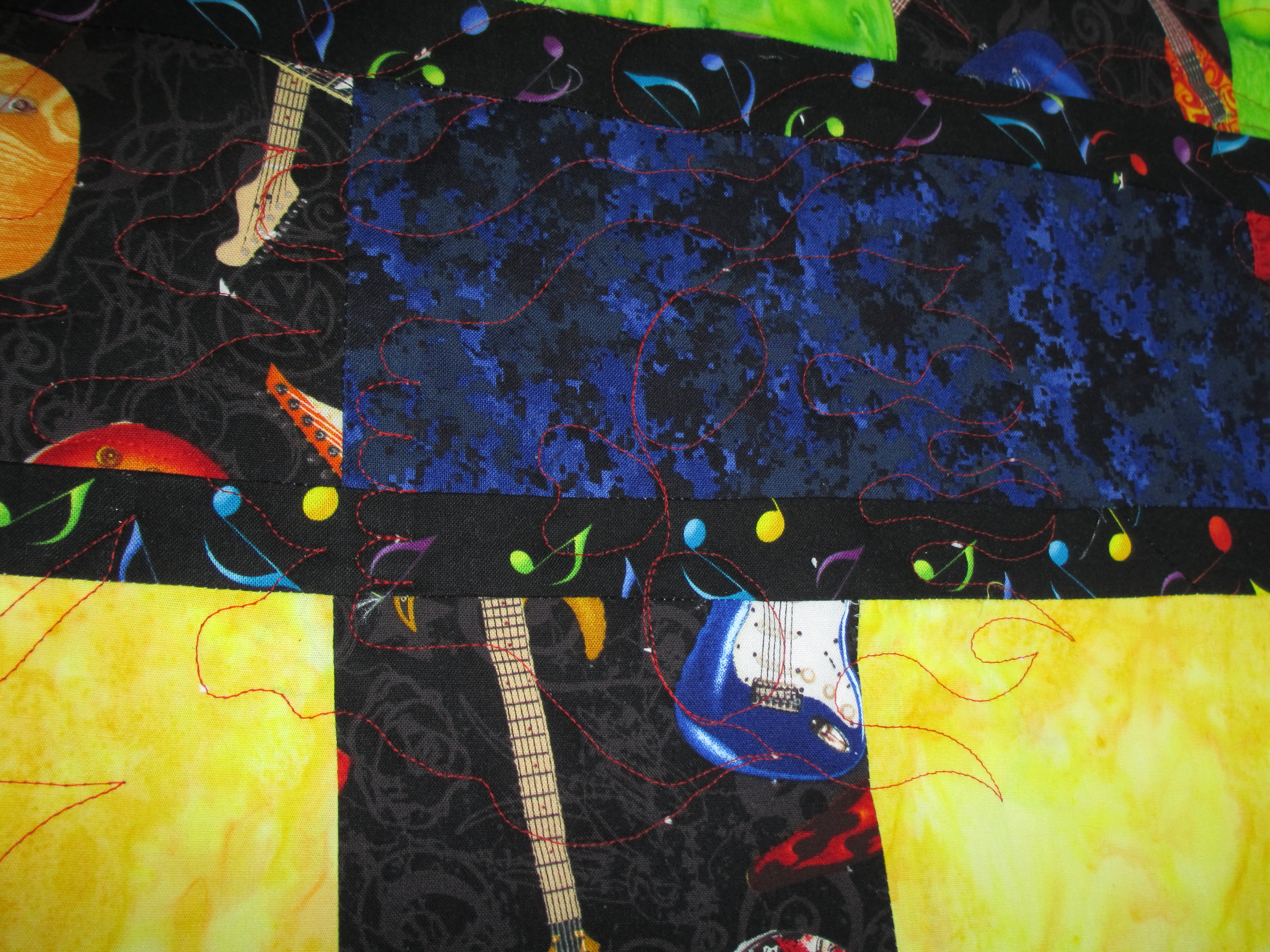 And, along the borders, I changed it up a bit by quilting spider mums. I’m not sure I got the exact essence of the flowers because I was only going with my imagination and the pictures in the fabric. Spider mums are one of my favorite flowers, so I knew the petals needed to be short in the middle and long on the outer edge. But, I wasn’t sure how to stitch that out so it would look more 3-D.